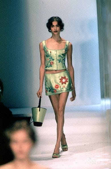 It’s also not lost on me that this resurgence of ‘90s runway inspired fashion is coinciding with Heroin Chic 2.0: Ozempic, celebrities’ collarbones stealing their red carpet thunder, skinny everywhere. BBL? Don’t know her.2